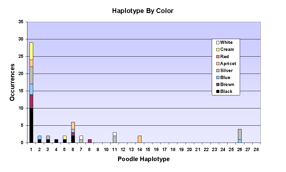 haplotypes have been found in all varieties of Poodle. Each dog inherits two haplotypes