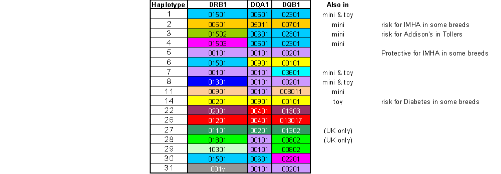 haplotypes have been found in Standard Poodles. Some of these also occur in