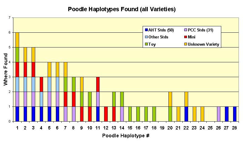 haplotypes have been found in all varieties of Poodle. Each dog inherits two haplotypes